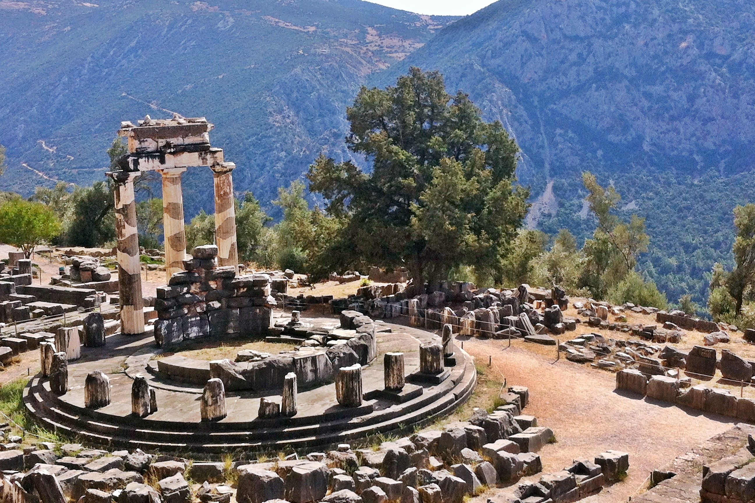 Also known as the Oracle of Apollo, Delphi is one of the most important sites in Greece. Located amphitheatrically along the slopes of Mount Parnassus and with its stunning view over the olive grove of Amphissa, Delphi is also one of the most beautiful landscapes in all of Greece, proving again that the ancient Greeks knew how to choose their religious sites.